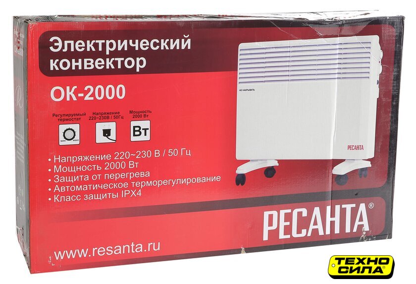 конвектор, 1500 Вт, термостат, крепление на стену, управление механическое