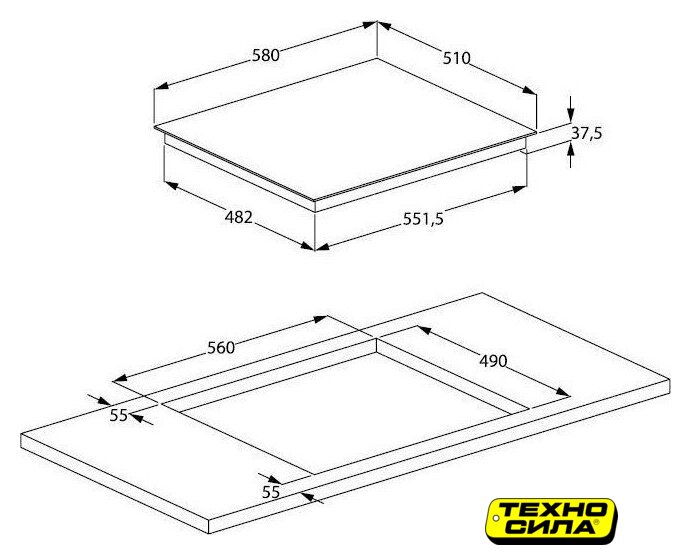 HiLight на 4 конфорки, cтеклокерамика, независимая установка, размеры (ШхГ): 59.5x53 см