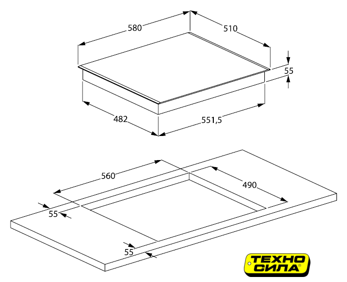индукционная на 4 конфорки, cтеклокерамика, мощность: 5600 Вт, независимая установка, размеры (ШхГ): 59x52 см