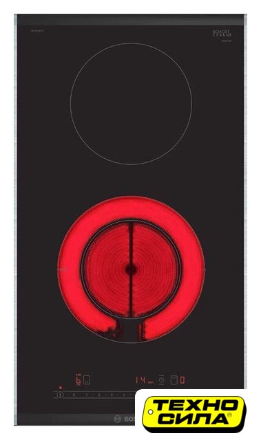 Подробная информация о конфорках | Конфорка: 120 мм, 180 мм, 1 кВт ( макс. мощность 2.3 кВт)Конфорка: 145 мм, 1.2 кВт |