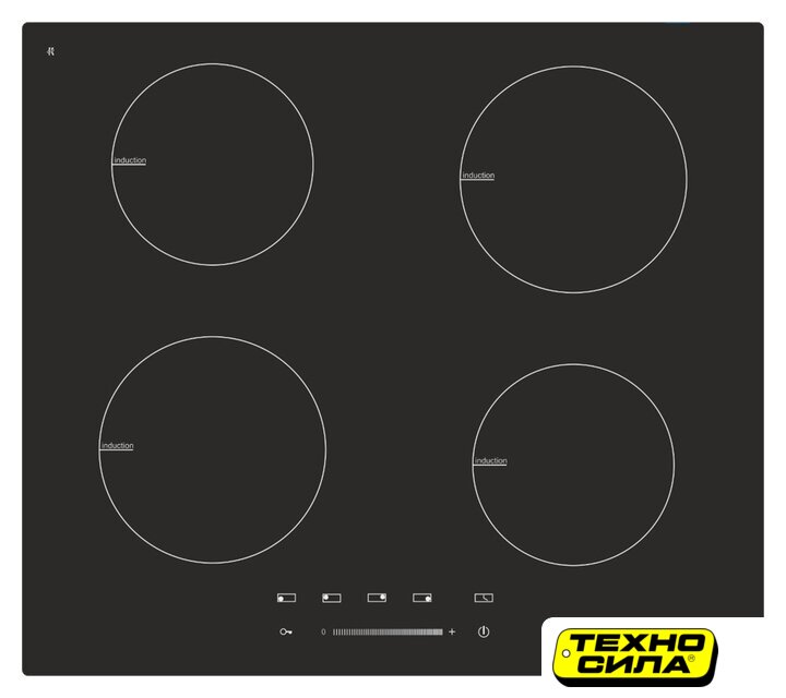 индукционная на 4 конфорки, cтеклокерамика, независимая установка, размеры (ШхГ): 59x52 см