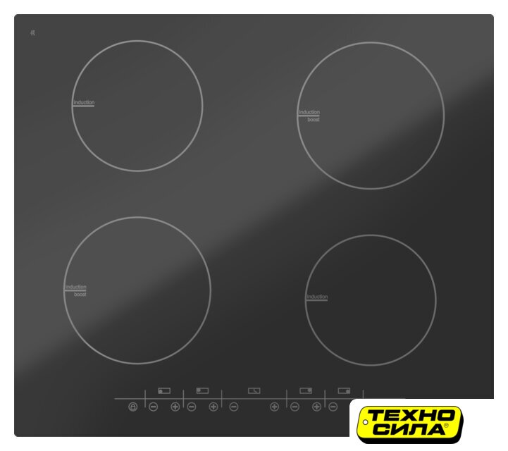 индукционная на 4 конфорки, cтеклокерамика, независимая установка, размеры (ШхГ): 59x52 см