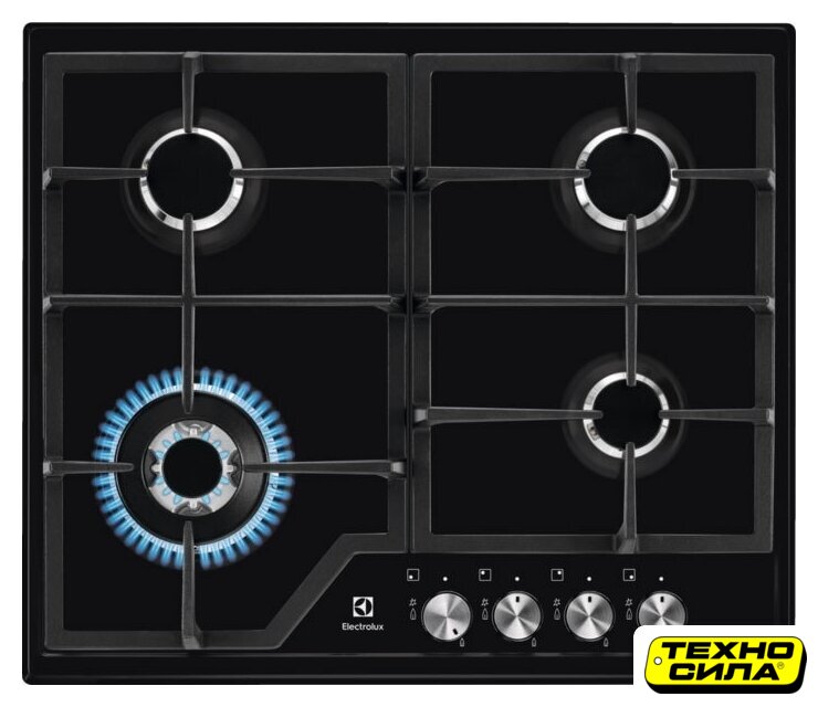 газовая на 4 конфорки, закаленное стекло, мощность: 9100 Вт, автоматический электроподжиг, газ-контроль, решетки: чугун, независимая установка, размеры (ШхГ): 59x51.5 см