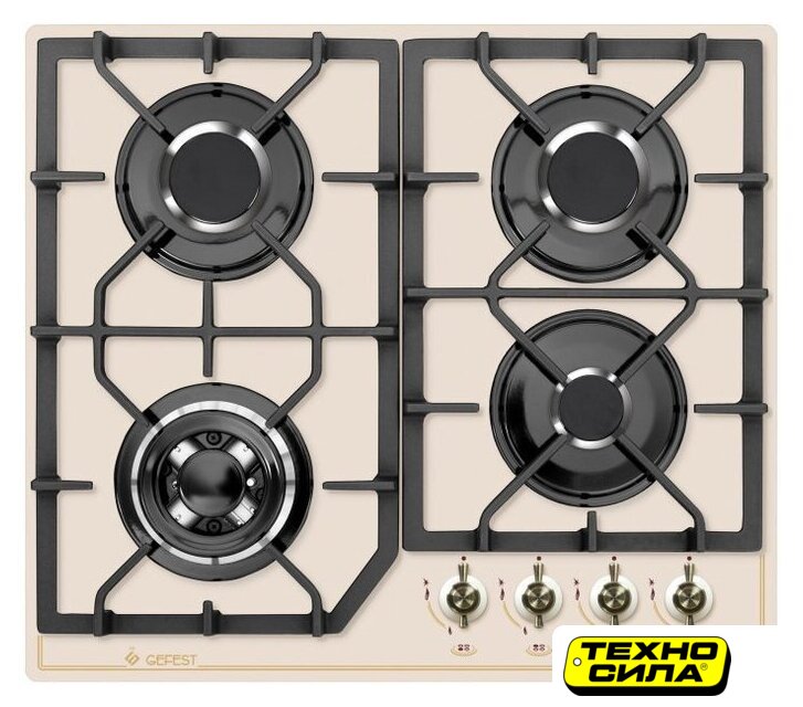 газовая на 4 конфорки, закаленное стекло, автоматический электроподжиг, газ-контроль, решетки: чугун, независимая установка, размеры (ШхГ): 60x52.5 см