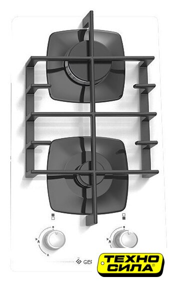 газовая на 2 конфорки, закаленное стекло, мощность: 3500 Вт, автоматический электроподжиг, газ-контроль, решетки: чугун, независимая установка, размеры (ШхГ): 30x53 см