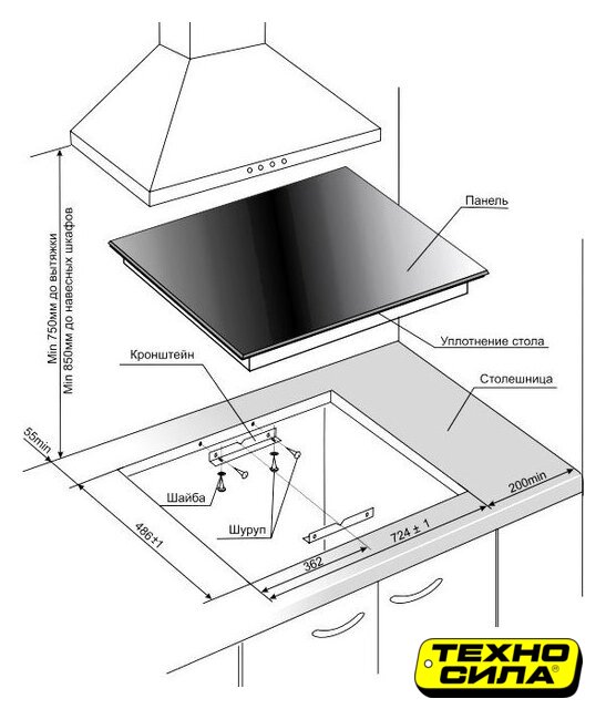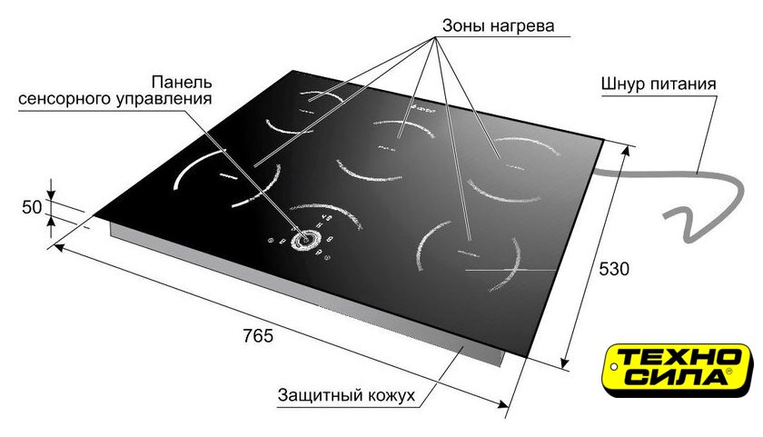 индукционная на 4 конфорки, cтеклокерамика, независимая установка, размеры (ШхГ): 59x52 см