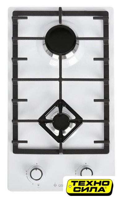 газовая на 2 конфорки, эмалированная сталь, мощность: 4000 Вт, автоматический электроподжиг, газ-контроль, решетки: чугун, независимая установка, размеры (ШхГ): 30x52 см