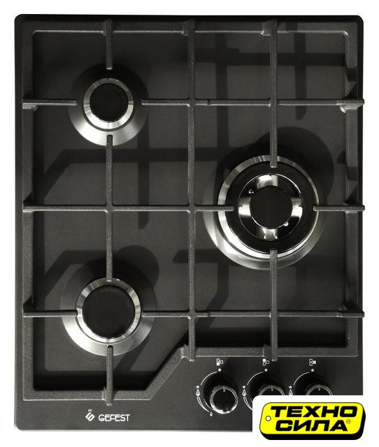 газовая на 3 конфорки, закаленное стекло, мощность: 6200 Вт, автоматический электроподжиг, газ-контроль, решетки: чугун, независимая установка, размеры (ШхГ): 45x51 см