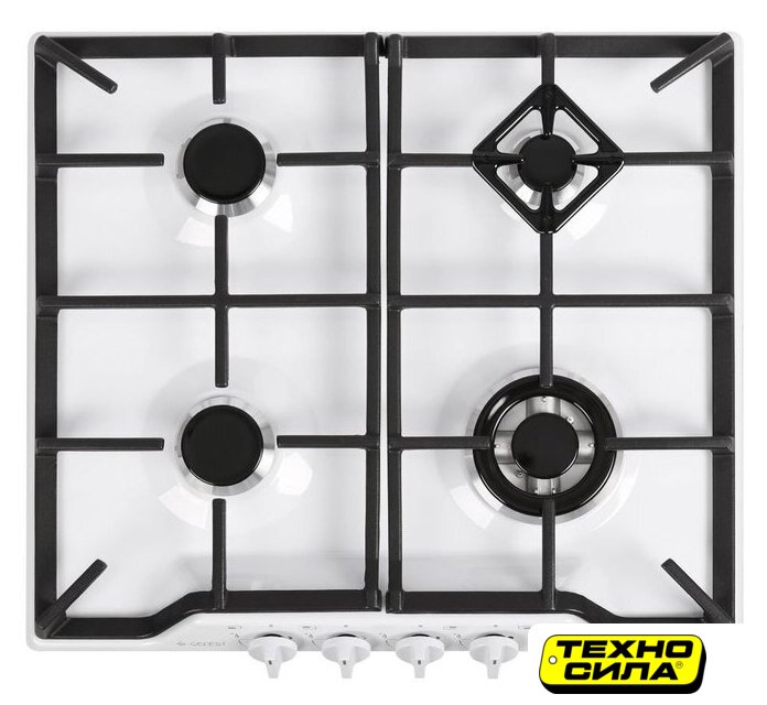 газовая на 4 конфорки, закаленное стекло, мощность: 7500 Вт, газ-контроль, решетки: эмалированная сталь, независимая установка, размеры (ШхГ): 60x52 см
