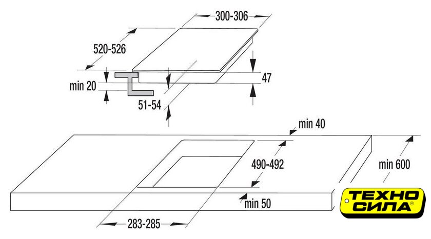 HiLight на 4 конфорки, cтеклокерамика, независимая установка, размеры (ШхГ): 59x52 см