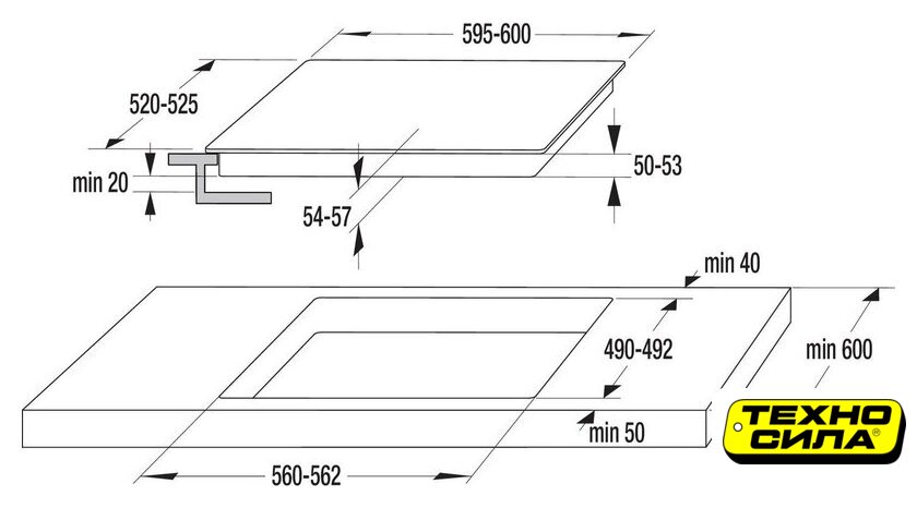 HiLight на 4 конфорки, cтеклокерамика, независимая установка, размеры (ШхГ): 59.5x53 см