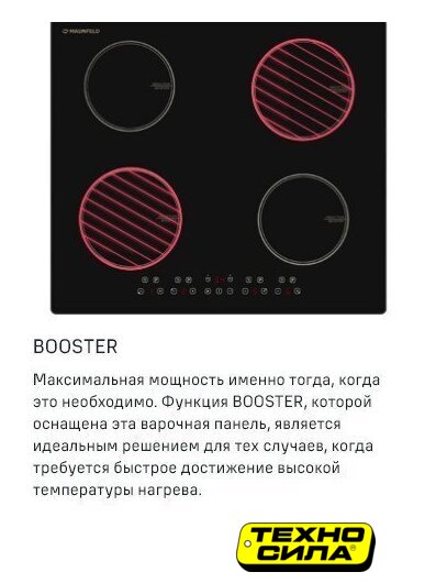 Подробная информация о конфорках | 2х1500 (бустер 2000)2х1200 (бустер 1500) |