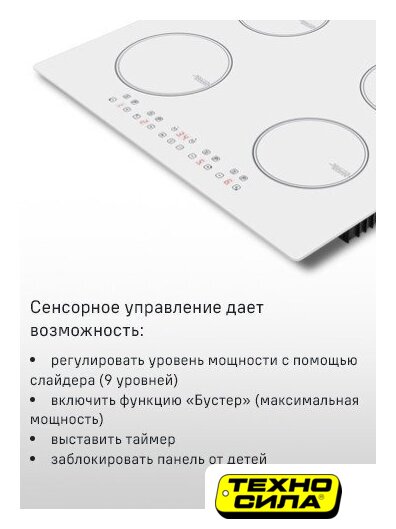 индукционная на 4 конфорки, cтеклокерамика, мощность: 7000 Вт