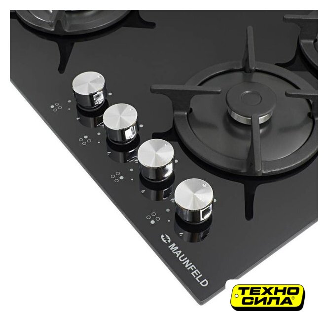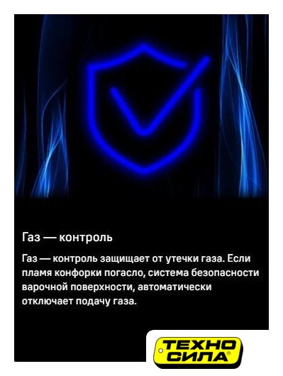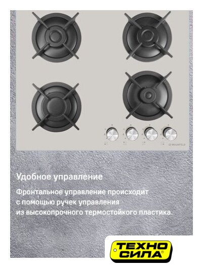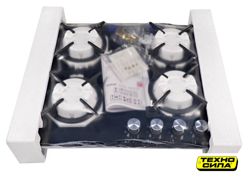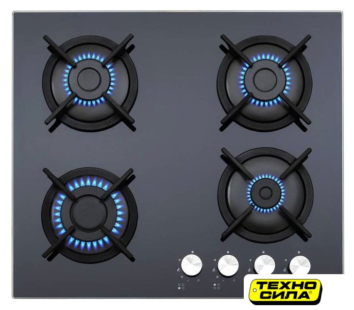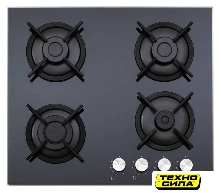 газовая на 4 конфорки, закаленное стекло, автоматический электроподжиг, газ-контроль, решетки: чугун, независимая установка, размеры (ШхГ): 63.5x52 см