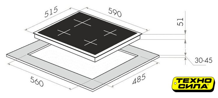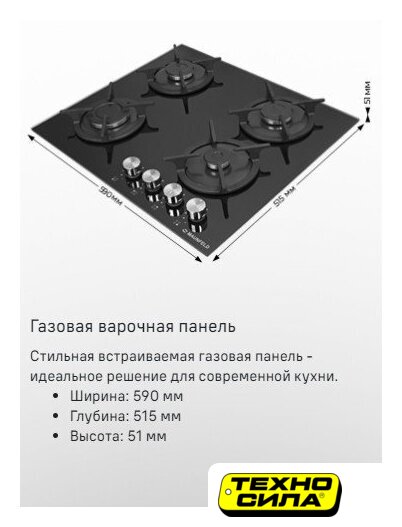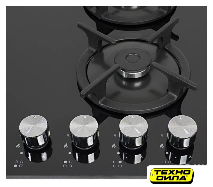 газовая на 4 конфорки, закаленное стекло, мощность: 7500 Вт, автоматический электроподжиг, газ-контроль, решетки: чугун, независимая установка, размеры (ШхГ): 60x51 см