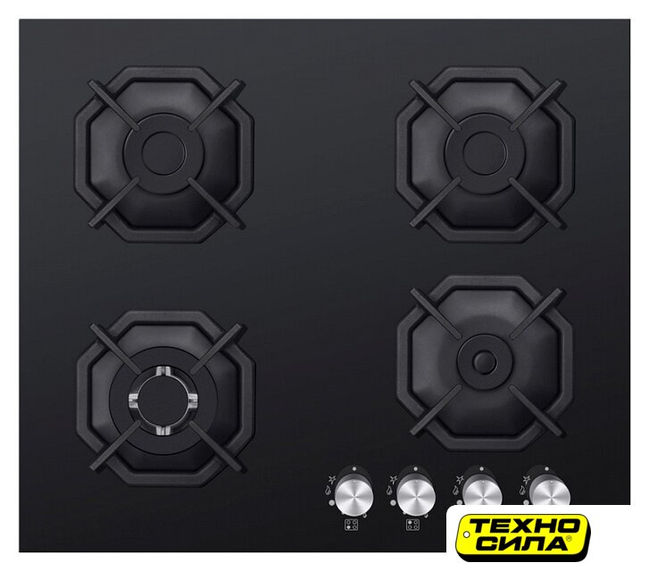 газовая на 4 конфорки, закаленное стекло, мощность: 7000 Вт, автоматический электроподжиг, газ-контроль, решетки: чугун, независимая установка