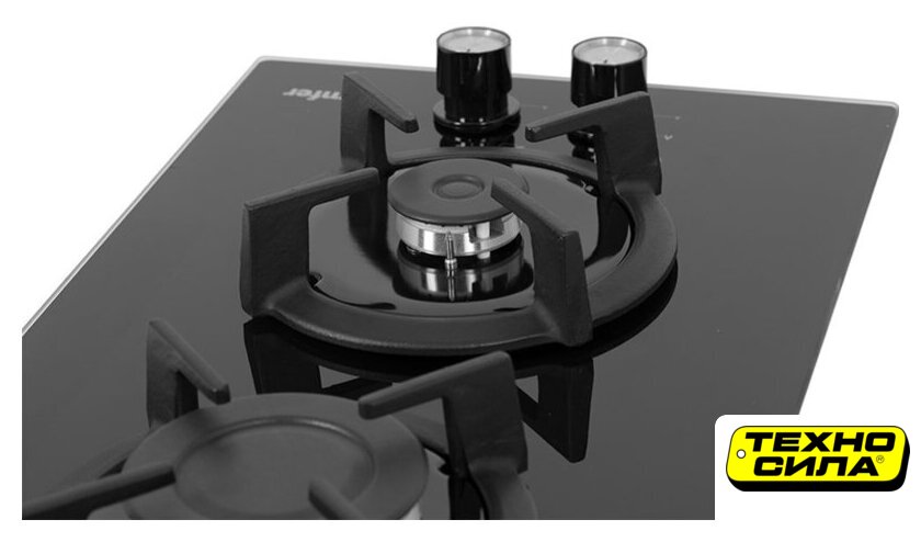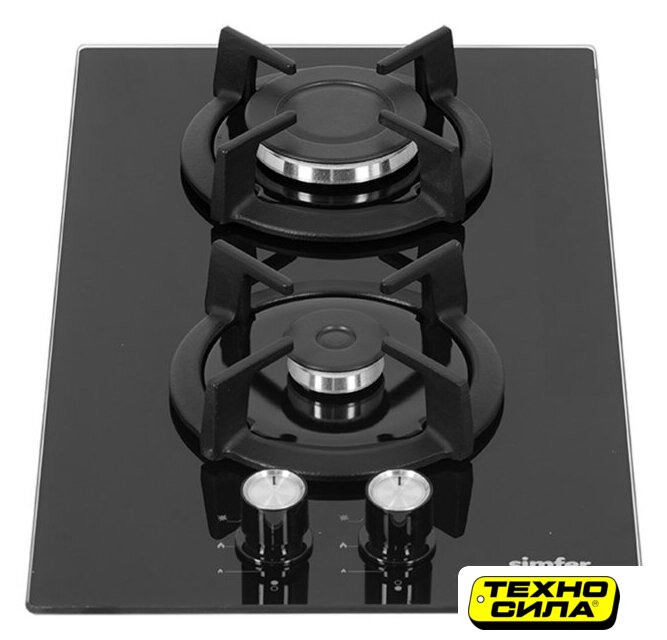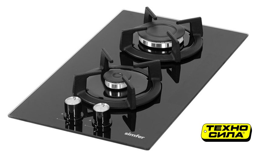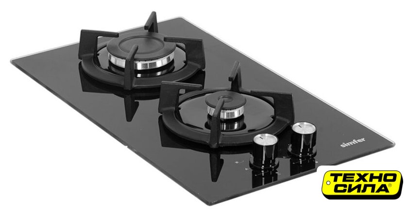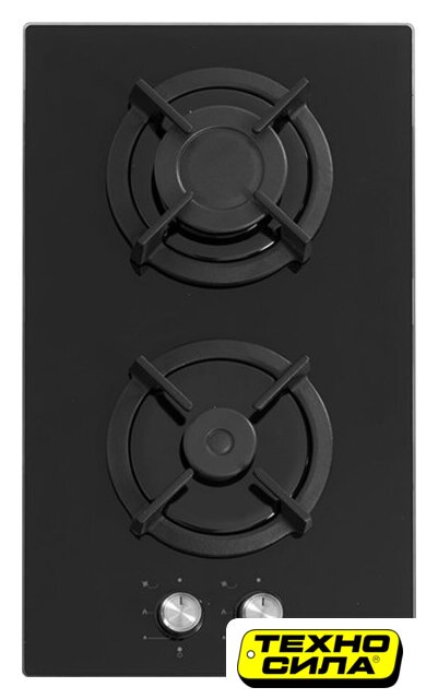 газовая на 2 конфорки, закаленное стекло, мощность: 4000 Вт, автоматический электроподжиг, газ-контроль, решетки: эмалированная сталь, независимая установка, размеры (ШхГ): 30x51 см
