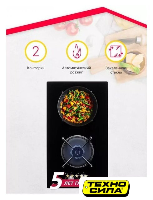 газовая на 2 конфорки, эмалированная сталь, автоматический электроподжиг, газ-контроль, решетки: чугун, независимая установка, размеры (ШхГ): 30x53 см