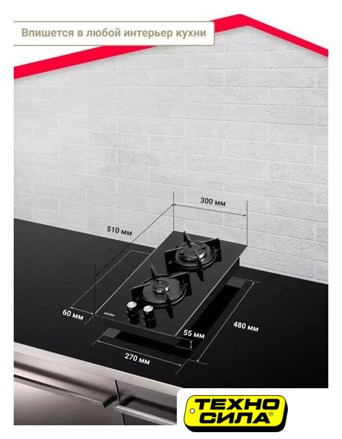 газовая на 2 конфорки, эмалированная сталь, автоматический электроподжиг, газ-контроль, решетки: чугун, независимая установка, размеры (ШхГ): 30x53.95 см