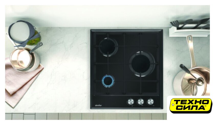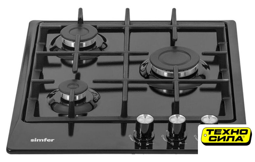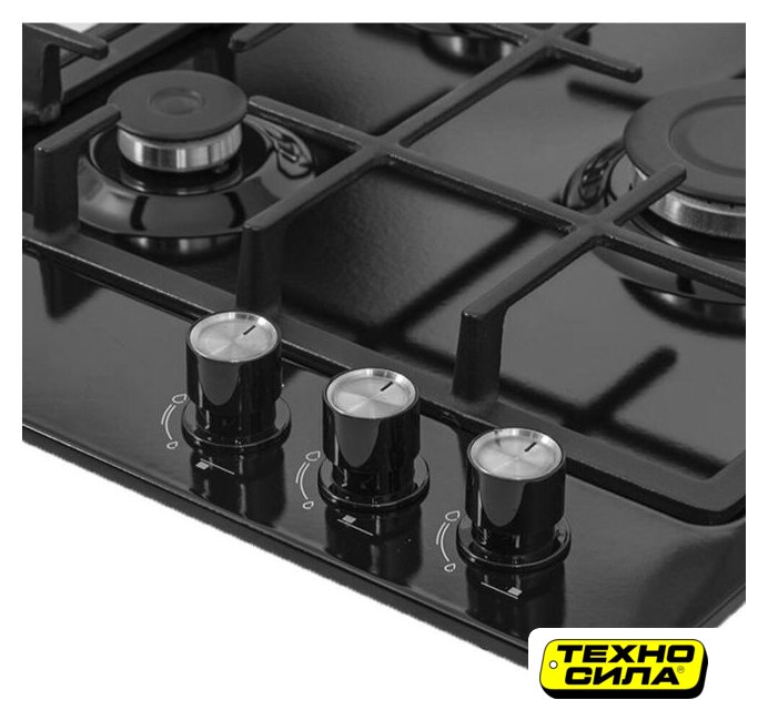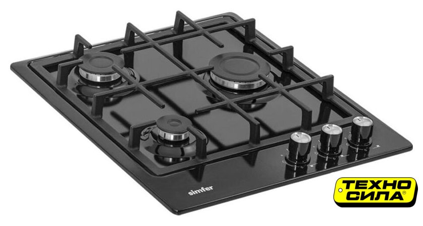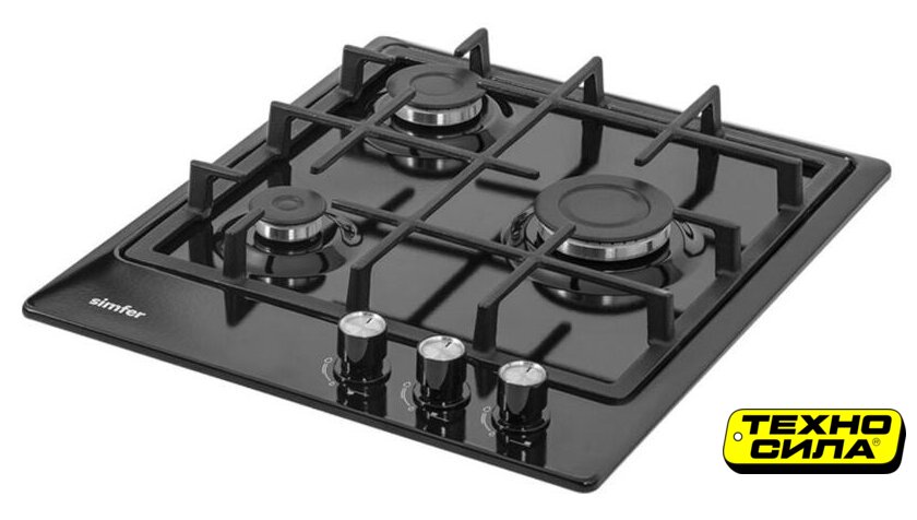 газовая на 3 конфорки, закаленное стекло, мощность: 6200 Вт, автоматический электроподжиг, газ-контроль, решетки: чугун, независимая установка, размеры (ШхГ): 45x51 см