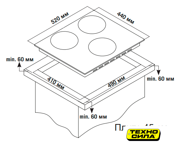 Подробная информация о конфорках | 3000 Вт1750 Вт1000 Вт |