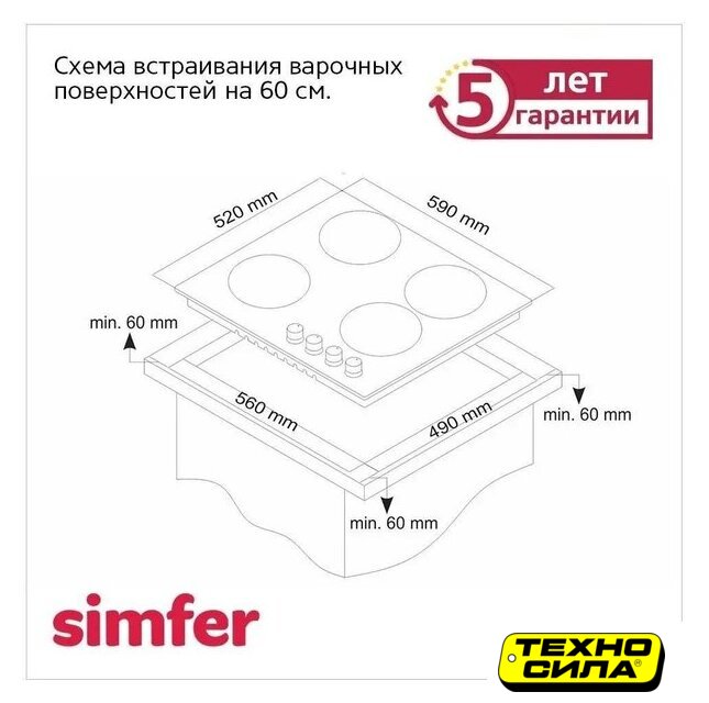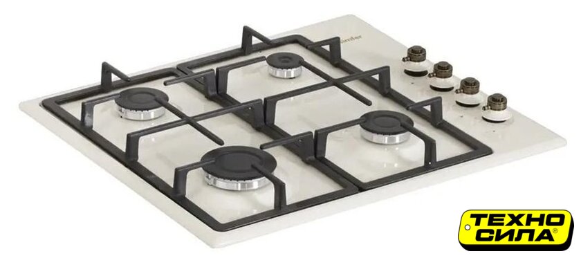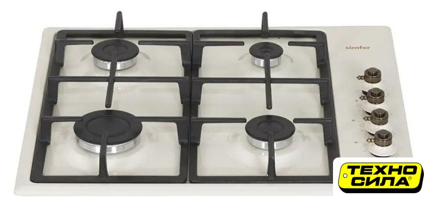 газовая на 4 конфорки, нержавеющая сталь, мощность: 7500 Вт, механический электроподжиг, газ-контроль, решетки: чугун, независимая установка, размеры (ШхГ): 59x52 см