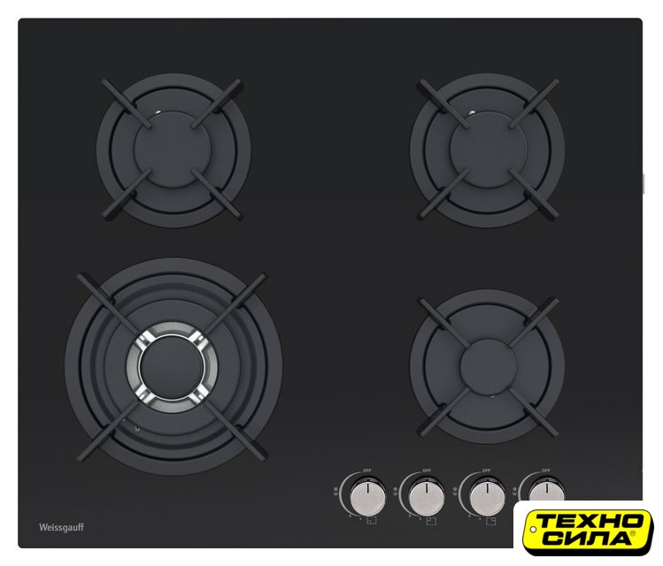 газовая на 4 конфорки, закаленное стекло, автоматический электроподжиг, газ-контроль, решетки: чугун, независимая установка, размеры (ШхГ): 63.5x52 см