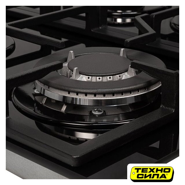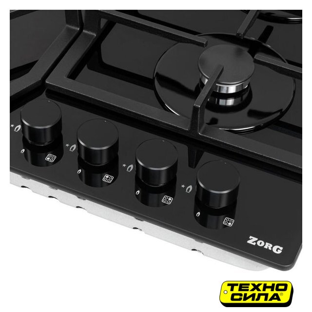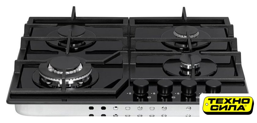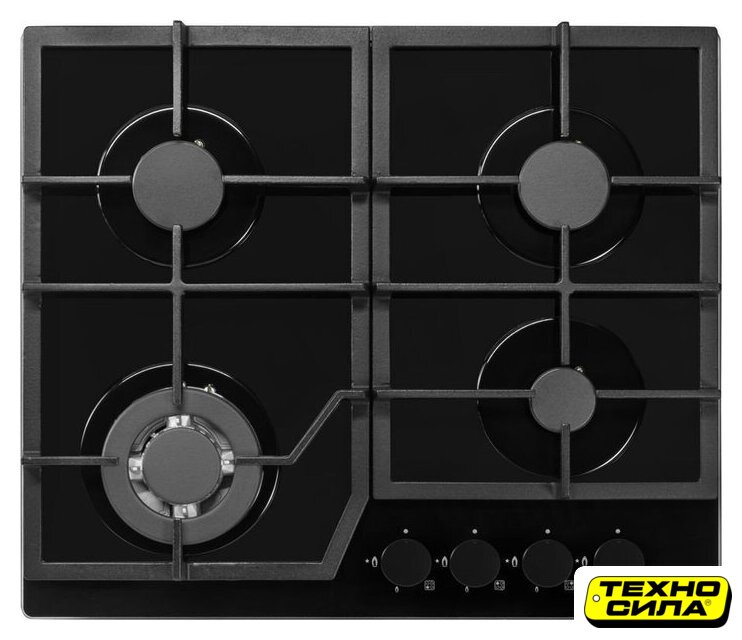 газовая на 4 конфорки, закаленное стекло, мощность: 7000 Вт, автоматический электроподжиг, газ-контроль, решетки: чугун, независимая установка