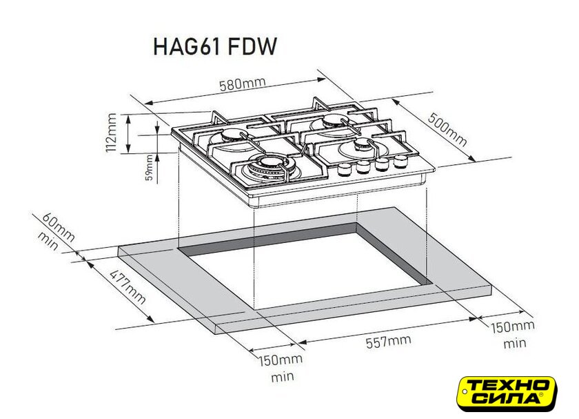 газовая на 3 конфорки, закаленное стекло, мощность: 5700 Вт, автоматический электроподжиг, газ-контроль, решетки: чугун, независимая установка, размеры (ШхГ): 55x41 см