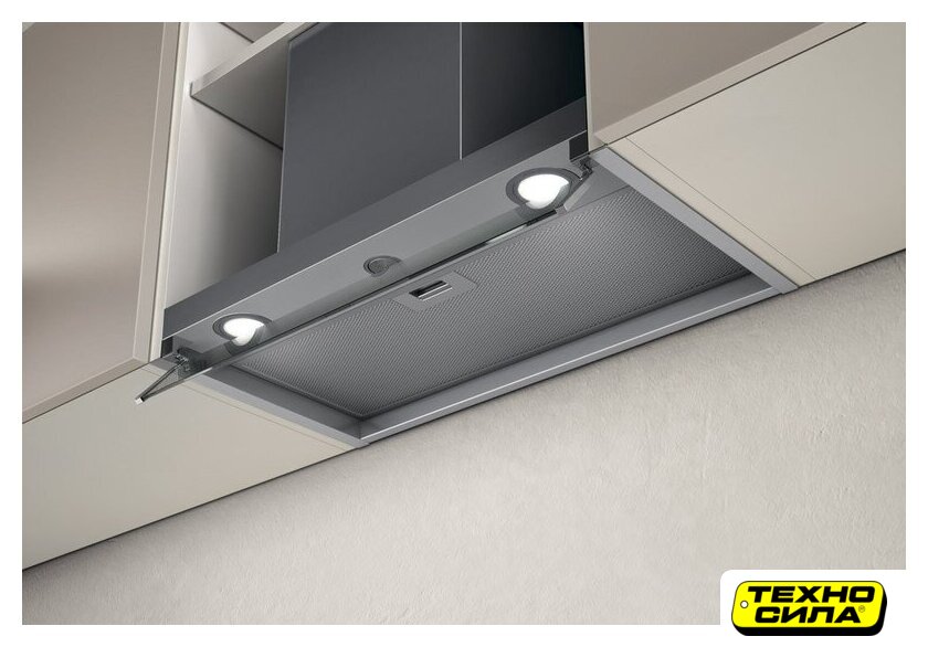 конструкция скрытая, монтаж для встраивания, ширина 59.4 см, управление поворотный переключатель, производительность вытяжки 620 м³/ч, производительность мотора 1000 м³/ч, цвет нержавеющая сталь