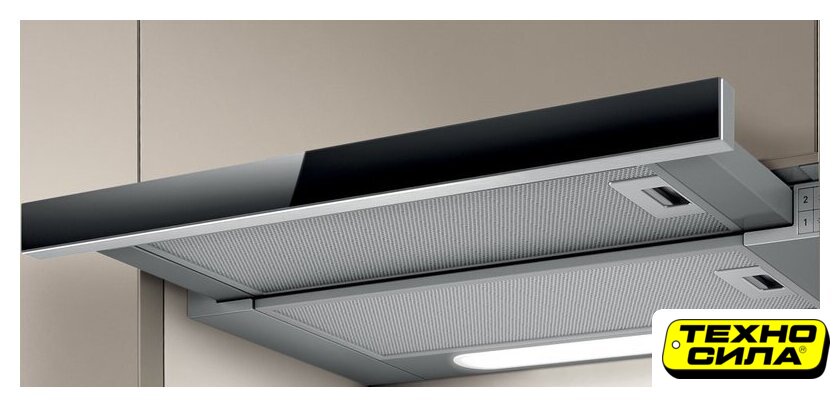 конструкция скрытая, монтаж для встраивания, ширина 73.5 см, управление поворотный переключатель, производительность мотора 850 м³/ч, цвет нержавеющая сталь