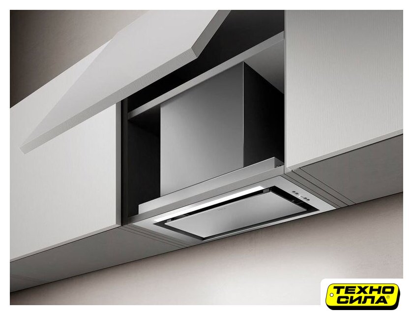 конструкция скрытая, монтаж для встраивания, ширина 52.3 см, управление электронное/кнопочное, производительность вытяжки 600 м³/ч, производительность мотора 1300 м³/ч, цвет белый/нержавеющая сталь