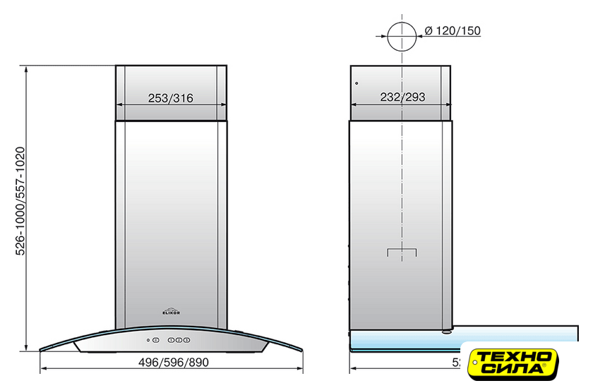 конструкция купольная, монтаж настенный, управление электронное/кнопочное, производительность вытяжки 1000 м³/ч, ширина 60 см