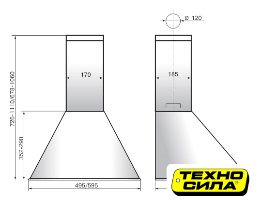конструкция телескопическая, монтаж для встраивания, управление механическое/слайдерное, производительность мотора 600 м³/ч, ширина 60 см