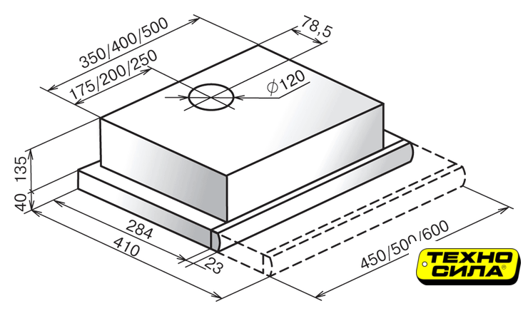 конструкция телескопическая, монтаж для встраивания, управление механическое/кнопочное, производительность мотора 400 м³/ч, ширина 50 см