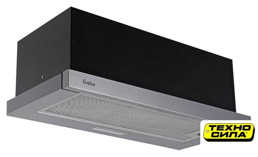конструкция телескопическая, монтаж для встраивания, ширина 59.5 см, управление механическое, производительность мотора 720 м³/ч, цвет черный