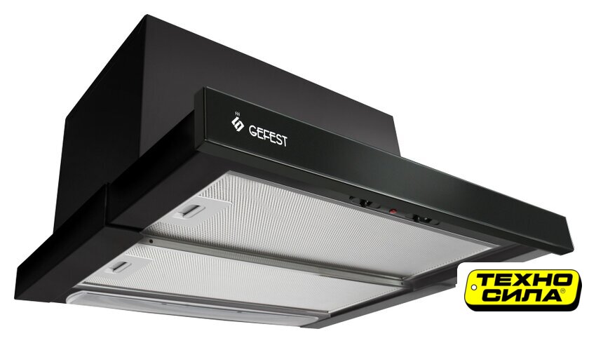 конструкция наклонная, монтаж настенный, ширина 59.5 см, управление механическое/кнопочное, производительность мотора 700 м³/ч, цвет черный
