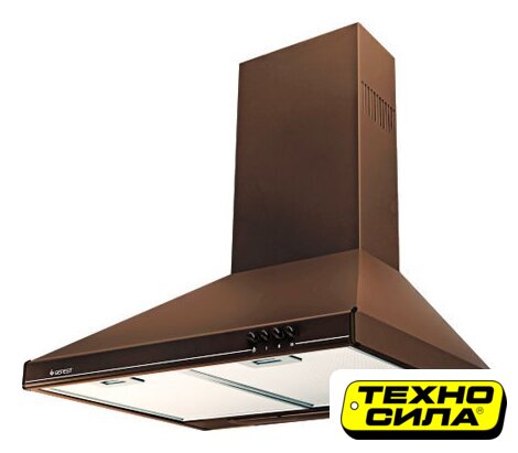 конструкция купольная, монтаж настенный, ширина 50 см, управление механическое/кнопочное, производительность вытяжки 600 м³/ч, цвет коричневый