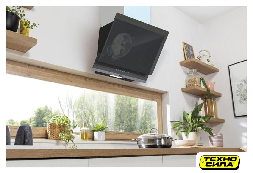 конструкция Т-образная, монтаж настенный, ширина 59.8 см, управление сенсорное, производительность мотора 800 м³/ч, цвет черный