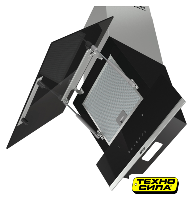 конструкция Т-образная, монтаж настенный, ширина 59.6 см, управление механическое/кнопочное, производительность мотора 700 м³/ч, цвет черный