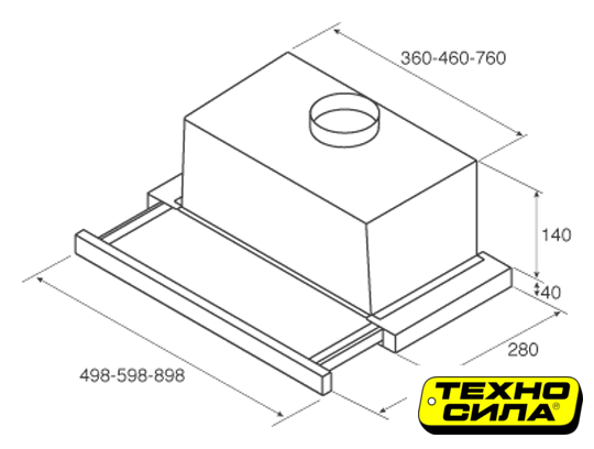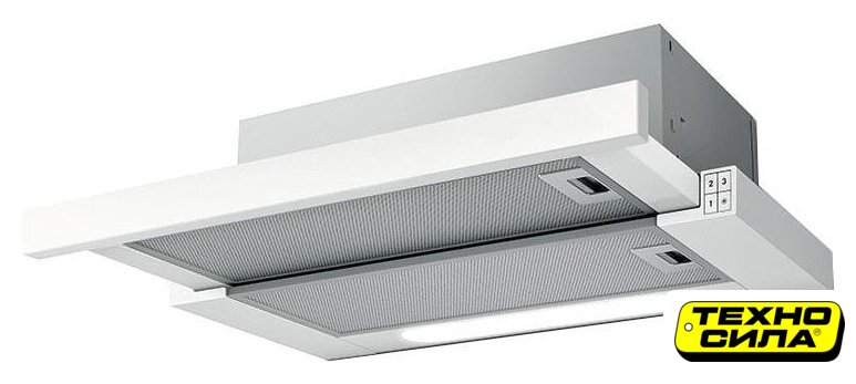 конструкция телескопическая, монтаж для встраивания, управление механическое/кнопочное, производительность мотора 650 м³/ч, ширина 59.8 см