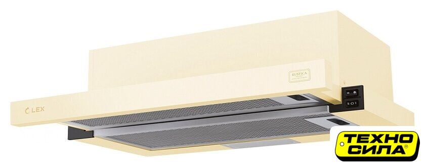 конструкция телескопическая, монтаж для встраивания, ширина 59.5 см, управление механическое, производительность мотора 720 м³/ч, цвет черный