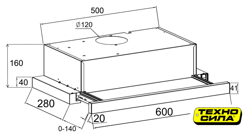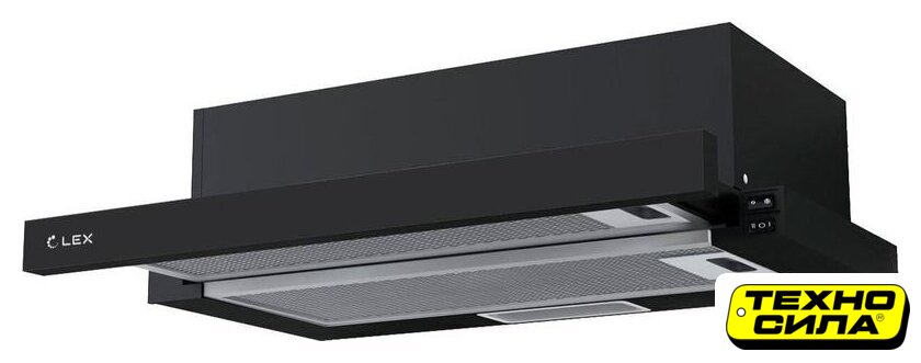конструкция телескопическая, монтаж для встраивания, управление механическое/кнопочное, производительность мотора 400 м³/ч, ширина 60 см