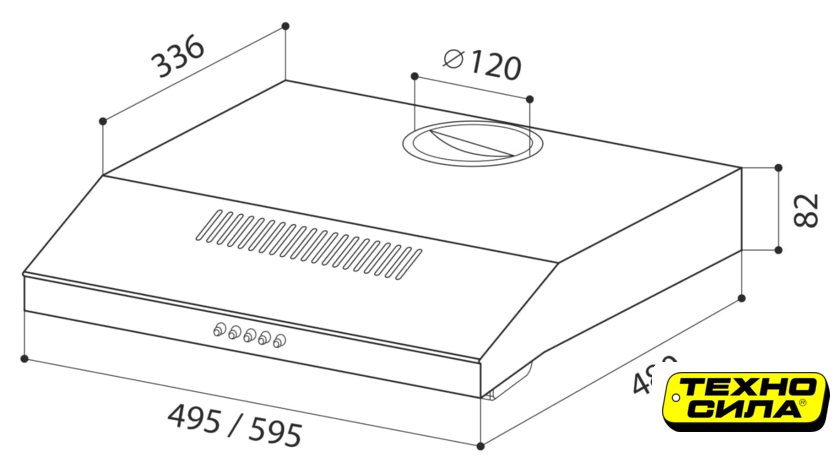 конструкция купольная, монтаж настенный, управление кнопочное, ширина 50 см
