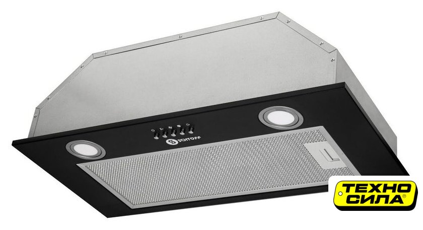 конструкция телескопическая, монтаж для встраивания, ширина 50 см, управление механическое/кнопочное, производительность мотора 650 м³/ч, цвет черный