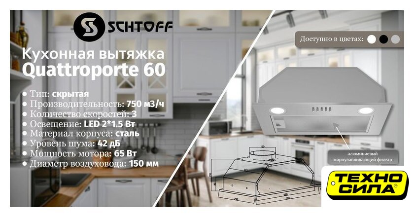 монтаж настенный, ширина 60 см, управление кнопочное, производительность вытяжки 600 м³/ч