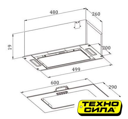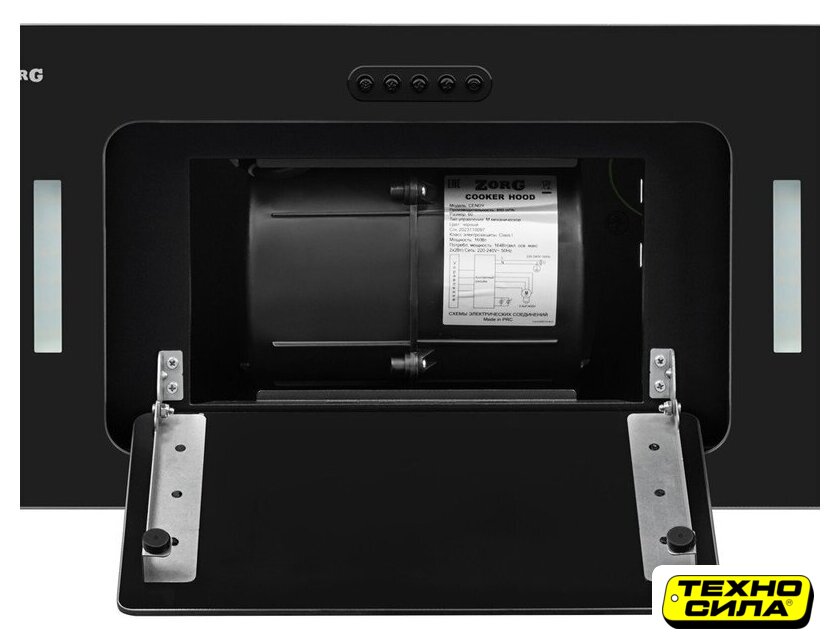 конструкция купольная, монтаж настенный, ширина 49.6 см, управление механическое/кнопочное, производительность мотора 430 м³/ч, цвет черный