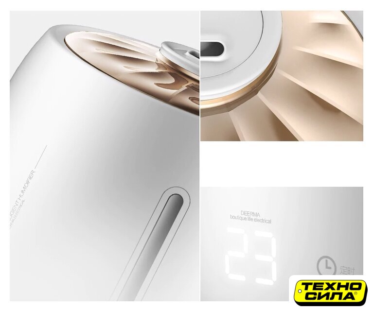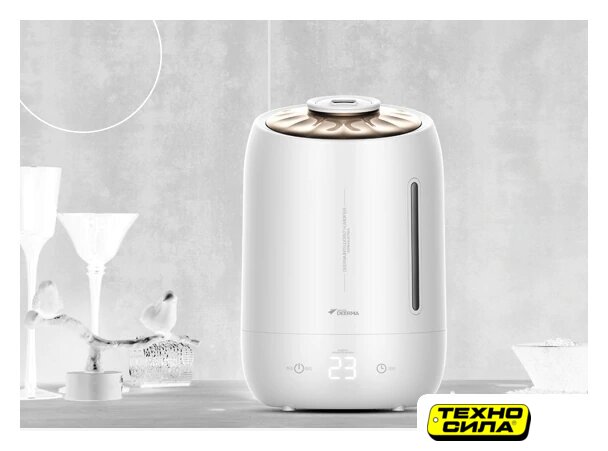 ультразвуковой, помещение до 25 м², производительность 300 мл/ч, резервуар 4.5 л, ароматизация, шум 38 дБ, цвет белый
