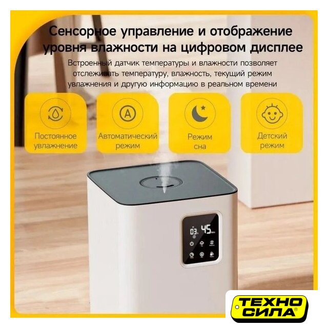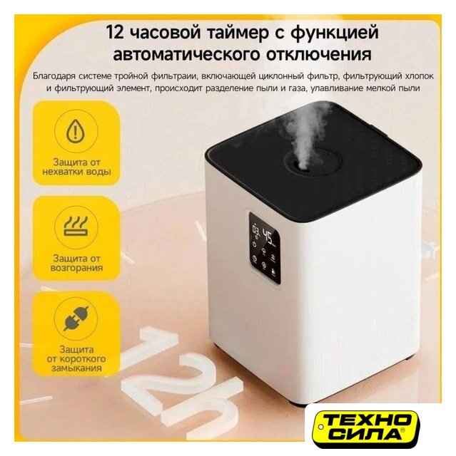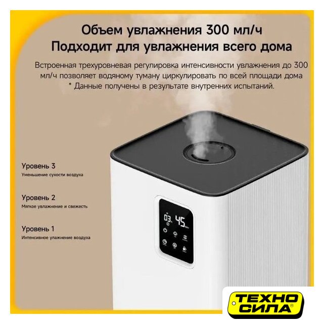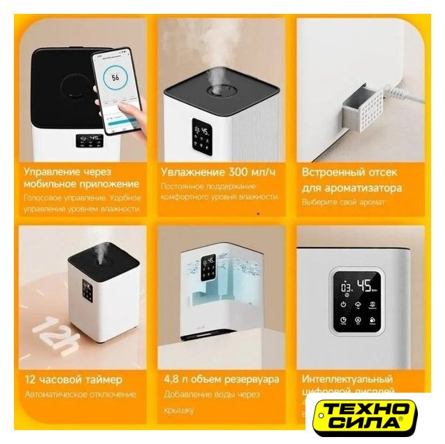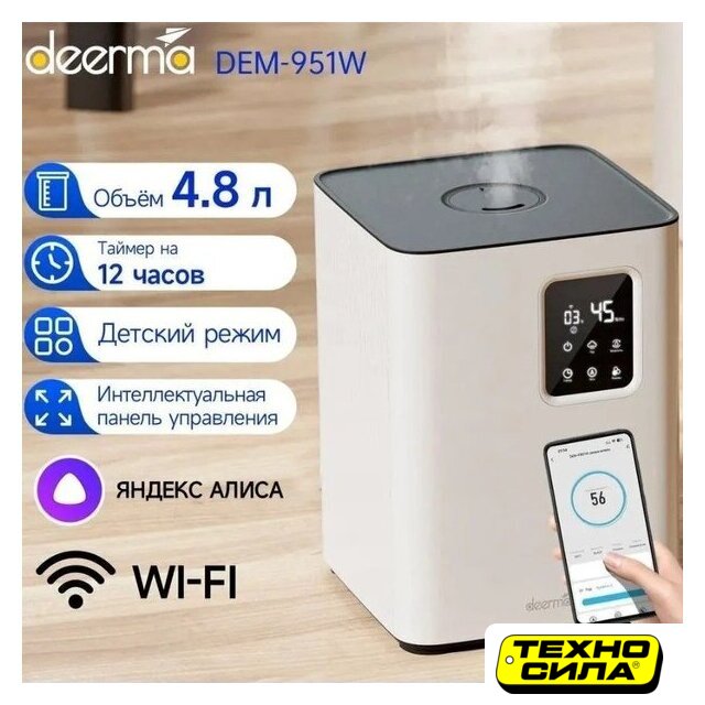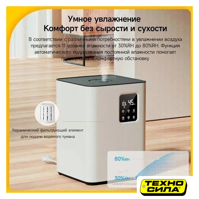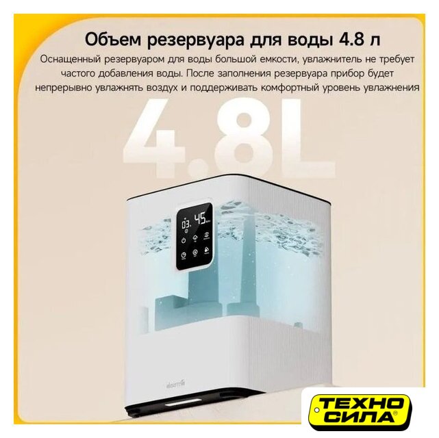 ультразвуковой, помещение до 50 м², производительность 390 мл/ч, резервуар 8 л, гигростат, Яндекс Алиса/фирменное приложение, цвет черный