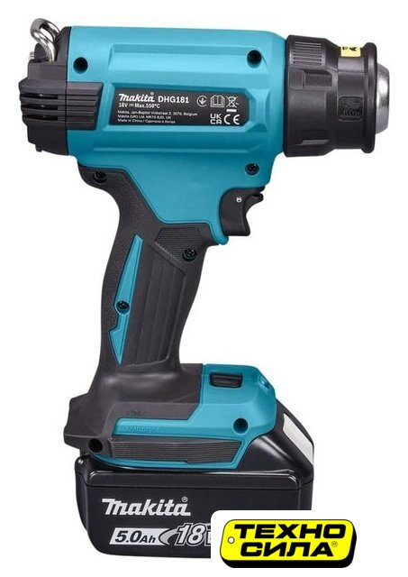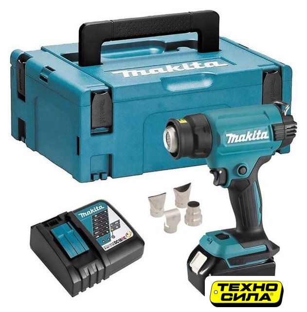 Комплект поставки | - Термовоздуходувка- Широкое сопло с широкой щелью - Широкое сопло с узкой щелью - Сопло с отражателем - Широкое сопло - Кейс Makpac тип 2- Зарядное устройство Makita DC18RC (14,4-18В, Li-Ion)- Аккумулятор Makita BL1850B (18В, 5.0Ач, Li-Ion) |